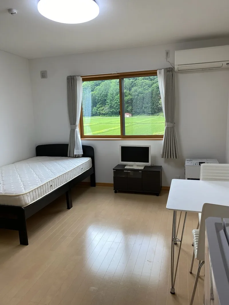 | 特徴・設備 | 家電・家具備え付け・バストイレ別・浴室乾燥機付ユニットバス・ウォシュレットトイレ・各自駐車場完備・インターネット・エアコン・FF式石油ファンヒーター・IHコンロキッチン・テレビ・ 冷蔵庫・ 洗濯機・ 電子レンジ・ 炊飯器・ 掃除機・ オーブントースター・ 電気ケトル・ ベット・ テーブル・ イス・ 照明・ カーテン |